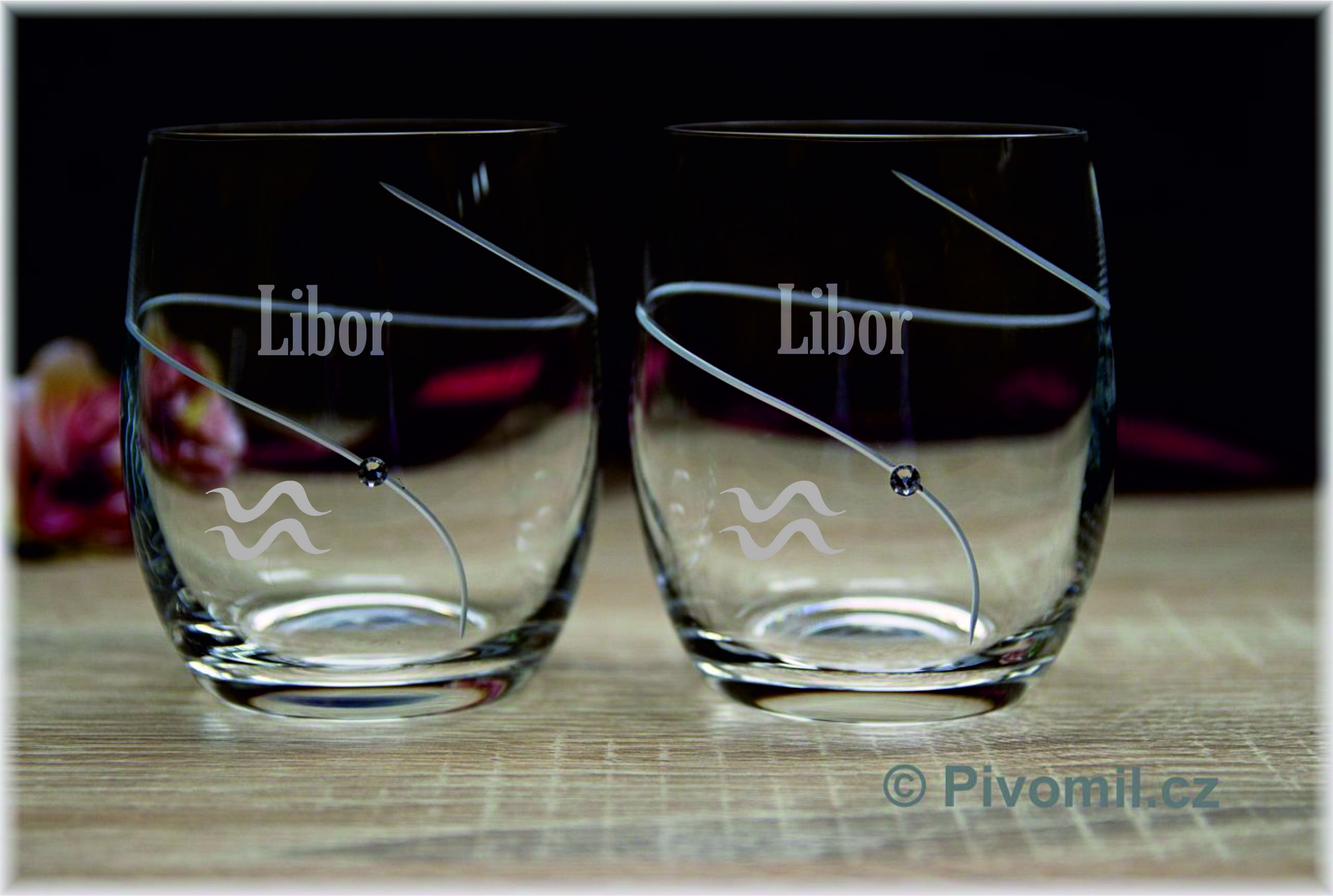- Sklenice broušené SWAROVSKI® znamení VODNÁŘ a jméno 2ks